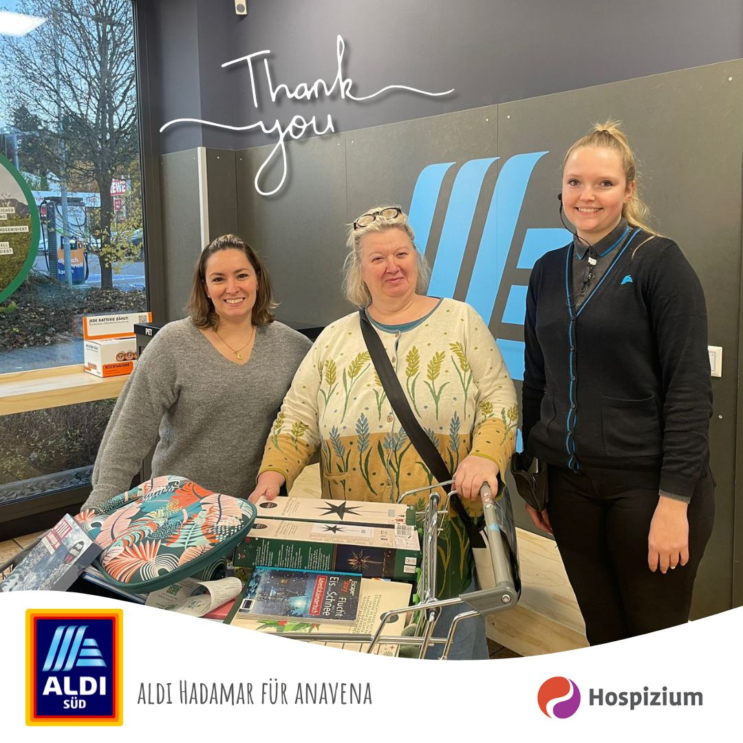Mit großer Freude durften wir eine großzügige Spende über 250 € in Form eines Einkaufsgutscheins entgegennehmen. Unsere Hospizleitung Frau Stahl und stellvertretende Pflegedienstleitung Frau Schleifer haben den Gutschein bereits genutzt, um viele wunderschöne Preise für unsere Tombola auf dem Weihnachtsmarkt in Hadamar zusammenzustellen.